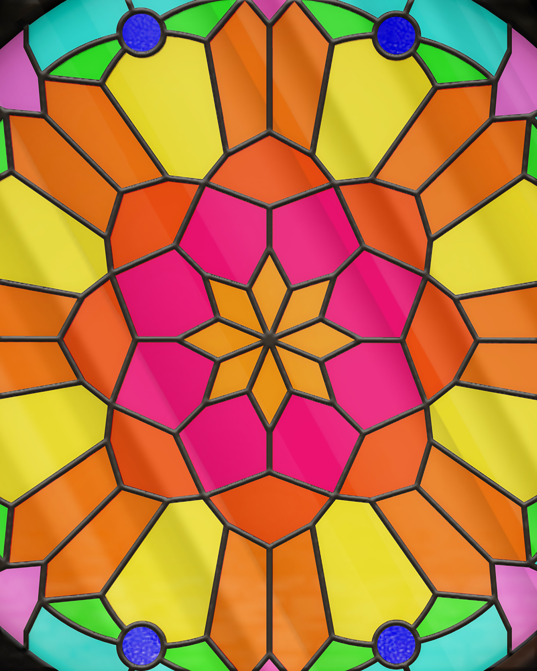 The Amariya at the center of the top vault was fitted with colorful stained glass, introducing a duality between the vibrant, color-infused interior and the natural environment outside.