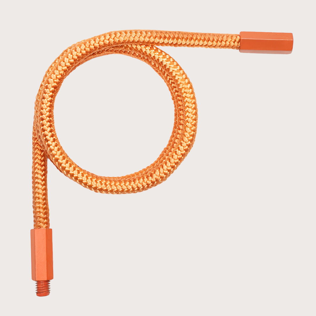 BEADS Rope Extension is 1.36 meters salmon-colored PPMF rope with salmon painted metal Extension Accessories at both ends, enabling connection to the First Stopper on one side and an additional Rope Extension on the other.